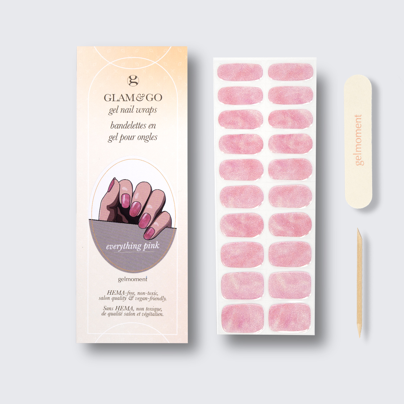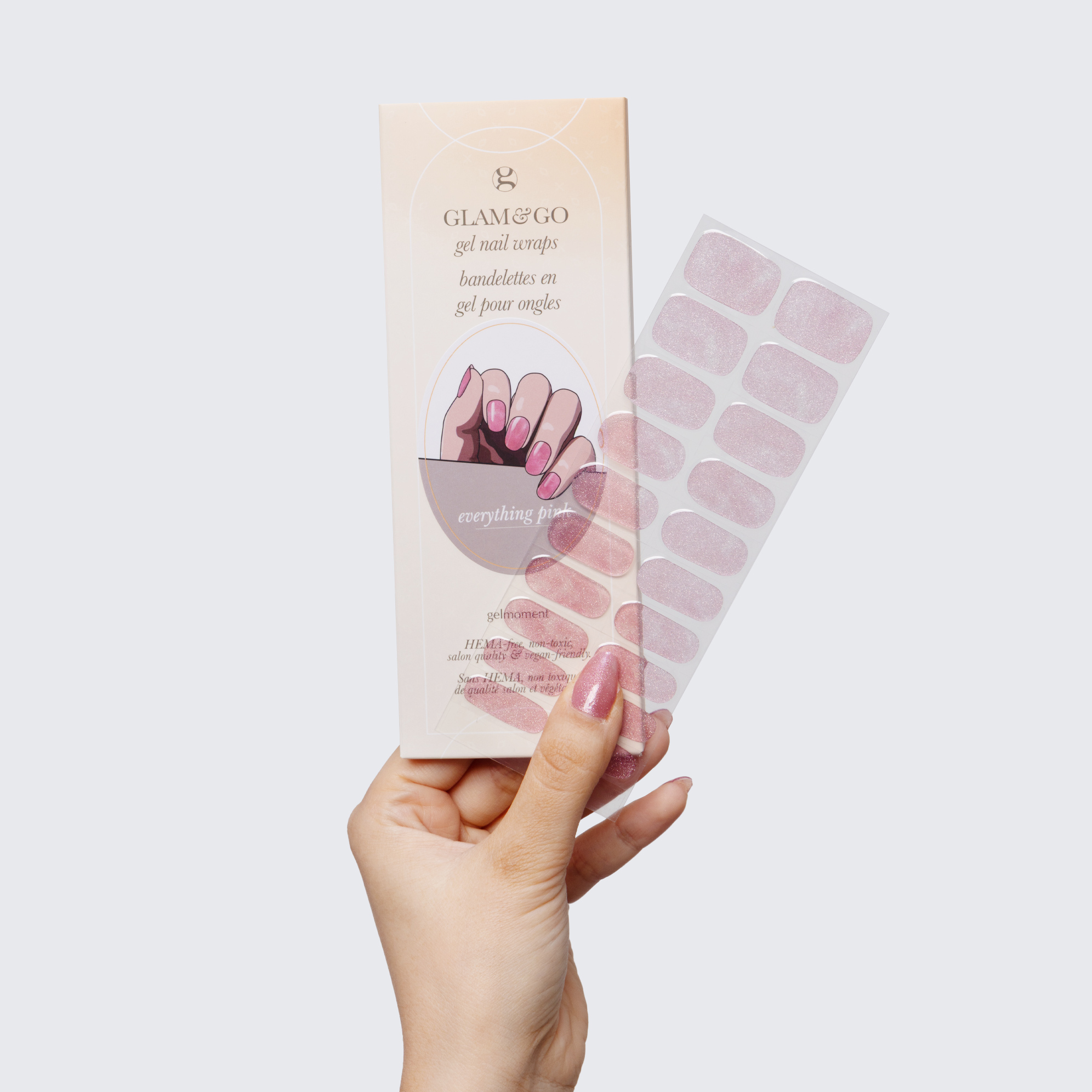 Plus, not only do GLAM & GO gel nail wraps provide the same glossy finish you know and love from our regular gel polish, but they are also HEMA FREE and have a wear time of up to 14+ days.